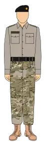 The Uniforms of the Royal Danish Army distinguish soldiers from other service members. Royal Danish Army uniforms were originally influenced by French, Prussian and Russian military traditions.[1] However, in more recent times, its uniforms have been characterized as being influenced by British uniforms,[2] and, more significantly, American uniforms.[3]