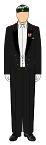 With the introduction of the M/69 uniform, officers could wear service uniform, however, they lacked a mess dress that was not full dress or Snorefrakke.[65] The army therefore, introduced the Selskabsuniform M/70, which can be worn as either a full evening dress or Black tie.[66] The female version (M/81), only exists as black tie, and has a long skirt instead of pants.[66]