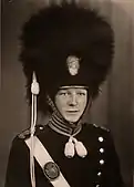 The original headgear for the Guards was the Tricorne, which was introduced along with the uniform in 1660.[57] In 1790, it was changed to the Mitre.[60] In 1805, the bearskin with feathers was introduced.[61]