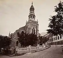 Union Church was founded in 1844 by James Legge, a Scottish sinologist and missionary from the London Missionary Society, who served as pastor from 1844-1867 and from 1870–1873. The first Union Church building, called 'Union Chapel',[4] was built in 1845 on Hollywood Road. In 1866, the Church was relocated to a new site at the corner of Staunton Street and Peel Street (2nd generation building). The church on Staunton Street having become very crowded, it was moved to the site on Kennedy Road in 1890 (3rd generation building),[2] which also included a manse. The new building incorporated much of the materials from the 2nd generation building. The Church funded half the costs of building the nearby Kennedy Road stop of the Peak Tram.[5]