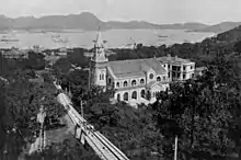 Union Church 3rd generation building next to the Peak Tram line, circa 1908.