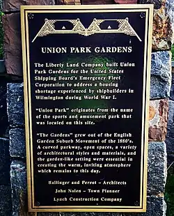 - ↑ "John Nolen's Union Park Gardens: Where Neighborliness Abounds / Wilmington, Delaware (2014) - Library of American Landscape History". 25 June 2014.