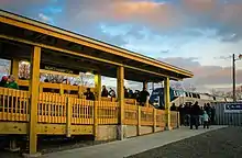 The Vermonter was rerouted to the line on December 29, 2014, stopping at Northampton, and Greenfield.[12] A temporary accessible platform was built at Northampton for the start of service, intended to be replaced by a permanent 400-foot (120 m)-long platform by the end of 2015.[13] The permanent platform was planned to be bid in combination with an underpass connecting the Norwottuck Rail Trail (part of the Mass Central Rail Trail) with the Northampton Bikeway north of downtown.[14] However, the underpass was bid separately in 2016.[15] Construction on a smaller project, extended the existing platform to 146 feet (45 m), began in April 2019.[16] The $1.6 million project was nearly complete by mid-June.[17]