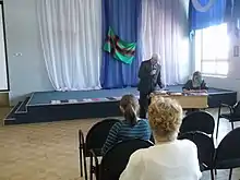 On May 25, 1989, the Karelian national-cultural public organization "Society of Karelian Culture" was created, which was registered in August 1989 and was renamed to the "Union of the Karelian People". The organization is responsible for creating the "Oma Pajo" choir, Finnish language "Carelia" newspaper and the "Oma Mua" newspaper in 1990 and "Vienan Karjala" newspaper in 2000.[2] The Union of Karelian People also organized education in Karelian in the PetrSU, the "Čičiliusku" puppet theatre company and popularized the game of Kyykkä in the Republic. The UKP works closely with the Ministry of the Republic of Karelia for National Policy and the Finnish Union of White Sea Karelians. The organization also helps to translate various government projects into Karelian.[3]