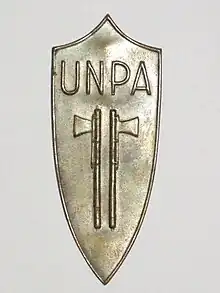 The Unione Nazionale Protezione Antiaerea, or UNPA ("National Union for Anti-Aircraft Protection"), was a civil defense organisation set up in Italy during the Fascist regime and active during World War II. It was tasked with instructing the civilian population about how to behave in case of air raids, managing air raid shelters, and participating in rescue efforts after the raids.[1][2][3][4][5]