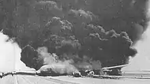 The aircraft had suffered a hydraulic failure while en route from Omaha. The failure was not thought serious, however; the crew followed the checklists for hydraulic failure, and preparation was made for an expected routine landing. The plane touched down normally, but when the engines' thrust levers were moved to the reverse position, the reverser buckets for the engines on the port side failed to deploy correctly.[2] That failure caused the left-side engines to continue generating forward thrust, while the right-side engines generated reverse thrust.