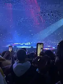 With a seating capacity of 23,500 for concerts, United Center has been a home to many concert performances. The first was Billy Joel, who stated the "...acoustics could use some work.." New Kids on the Block, Guns N' Roses, Prince, Adele, The Smashing Pumpkins, Taylor Swift, Madonna, U2, Rolling Stones, Tina Turner, Van Halen, Iron Maiden, Aerosmith, KISS, Bon Jovi, Barbra Streisand, Bruce Springsteen, Sir Paul McCartney, Janet Jackson, BLACKPINK, Celine Dion, Shakira, Coldplay, BTS, The Who, Pearl Jam, Green Day, blink-182, Jay-Z, Mary J. Blige, Ariana Grande, Lady Gaga, Muse, The Killers, Rod Wave, and Dua Lipa have all had sold-out shows for their concerts in this arena, as well as Dave Matthews Band, who released its 1998 show at the venue, entitled Live in Chicago 12.19.98 at the United Center.[39] Contemporary Christian music has also been played at this venue, on tours such as the Tomlin UNITED tour in June 2022, featuring Hilllsong UNITED, Chris Tomlin, and Pat Barrett.
