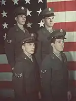 Army uniform used by U.S. Air Force after 1947, with airman rank insignia attached to the uniform.