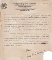 Above right is the academy photograph of Rear Admiral Richard Robert McNulty. As commodore of the U.S. Merchant Marine Cadet Corps of the U.S. Maritime Commission from 1938 to 1948 and for decades prior, he advocated for creation of the academy. The USMMA community considers McNulty to be the academy's "father". He was the academy's third superintendent. The letter appearing right is from the academy's early history and accompanied the photograph. The letter from the United States Merchant Marine Academy explains how, as the academy's third superintendent, Rear Admiral McNulty, strongly supported cadet sports, especially, baseball. The Academic Dean, Dr. Shashi Kumar, Master Mariner served as acting superintendent between Admirals Worley and Greene and again between Greene and Helis. Rear Admiral Susan Dunlap, the deputy superintendent, serving as acting superintendent between Buono and Nunan.
