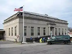 The US Post Office-Woburn Center Station is a historic post office building at 1 Abbott Street in Woburn, Massachusetts. The single story Classical Revival building was built out of sandstone in 1911. It is nine bays in width, with a central portico supported by Doric columns sheltering the main entrance. The building has a standing seam metal hip roof with a flat middle section. The cornice has dentil molding, with a parapet above.[2]