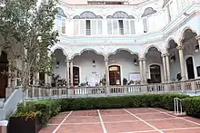 The university is located in a building that dates from the 1920s designed by architect E. Prunes, who took inspiration from the Palace of Azahara, with Islamic characteristics that can be seen on windows and balconies and “starting with the reliefs on the columns and its ends”.[2] Its architecture is also considered eclectic, since it includes styles such as art nouveau and from the renaissance.