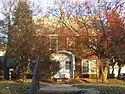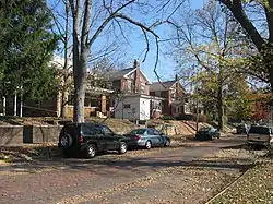 Before the district was first nominated for the National Register, four houses on the east half of the block bounded by Indiana Avenue, Fess Avenue, Eighth Street and Ninth Street were demolished. Joseph Smith of the Showers Brothers furniture factory engaged John Nichols to build a two-story brick Colonial Revival house at 403 North Fess in 1914. J. Neill was the general contractor.[7] Clarence Neill, general contractor, built a house for Charles F. Johnson at 421 North Fess in 1916. Edwin C. Doeppers and Company were the architects.[8] Indiana University's Mathers Museum of World Cultures and the Glenn A. Black Laboratory of Archaeology now occupy those two lots, among others.[9]