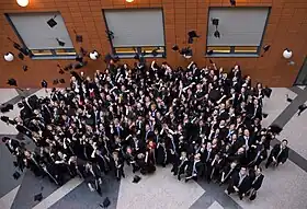 The Graduate Ball is an event in which authorities, employees of the faculty, but most of all the graduates of the Faculty of Management take part at the end of every academic year. It has been celebrated since 2005. This is a festive and remarkable day surrounded by a special atmosphere. During the ball not only certificates are given to the graduates but also individual awards are handed out to the students of the Faculty of Management for their academic achievements during the course of studies or work to the benefits of the faculty. An important part is dedicated to awarding favorite teachers chosen by the graduates of the Faculty with the prize of so-called WuZetka. The teachers are popular and appreciated due to their outstandingly interesting and effective way of teaching. The title of Partner of the Year is given to the organizations cooperating with the Business Council during the Graduate Ball. The Business Council awards its best partners for their support and achievements connected with the Faculty of Management. The Graduate Ball finishes with the act of taking a commemorative picture of all the graduates of the Faculty of Management.[2]