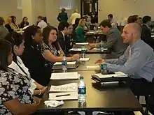 Ole Miss and Harvard MBA students networking in the Grove (2015)