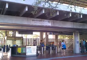 University station is a station on the Metrorail rapid transit system at the University of Miami in Coral Gables, Florida. The station is located at 5400 Ponce de Leon Boulevard at the intersection of Dixie Highway (US 1) and Mariposa Court.
