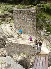 The village is divided in two by a deep gorge, which used to be crossed by a large stone bridge.