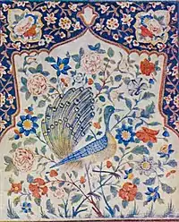 National traditions of wall painting, which is the most valuable legacy of Azerbaijani art, took the main place in the creativity of Usta Gambar Karabakhi. Chased decoration and richness of compositional and color resolutions can be seen in his delicate graphic painting of a complex plant ornament. The painter drew pictures of animals and fantastic beings upon branched ornaments of flowers and plants. The painting also didn't destroy flatness of the wall, but on the contrary, underlined its constructive architectural details.[7]