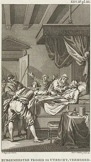 ![]() 18th-century image by Reinier Vinkeles and Jacobus Buys of the assassination of mayor Proys. | |||||||
