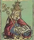 The Concordat of Worms (1122) stipulated that bishops in the Holy Roman Empire, to which the Prince-Bishopric of Utrecht belonged, should be elected by the church chapters and no longer appointed by the emperors, as had been customary since the introduction of the Imperial Church System until the Investiture Controversy.[3] From the 13th century onwards, most chapters lost their right to vote and only the cathedral chapters were still allowed to elect the bishop, but in Utrecht this developed differently: aside from St. Martin's Cathedral, the chapters of the Old Munster Church, St. Peter's Church, St. John's church and St. Mary's Church retained their voting rights.[4] These five chapters were part of the States of Nedersticht, and as such, they had influence on the government.[4] Each chapter was made up out of a number of canons; in the case of St. John's there were twenty.[4] In theory, these canons had the freedom to choose whichever candidate-bishop they liked, but in practice they were under the influence (by means of bribery or blackmail, for example) of neighbouring princes, especially the Count of Holland, the Count and later Duke of Guelders and eventually also the rising Duke of Burgundy, to opt for a candidate they had nominated.[5] As the eventual winner was usually already quite old and also passed away relatively soon again, the Prince-Bishopric of Utrecht experienced many more power transfers than the realms surrounding it, where due to the principle of hereditary succession a deceased count or duke was usually succeeded by his much younger son.[5] Moreover, since the 14th century, the Popes had been trying to increasingly overrule the chapters by ignoring their choices, and claiming the exclusive right to appoint all bishops themselves.[3]