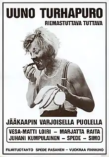 Uuno Turhapuro is a 1973 Finnish comedy film directed by Ere Kokkonen, and the first, black and white Uuno Turhapuro film. It stars Vesa-Matti Loiri, Marjatta Raita, Pertti Pasanen, and Simo Salminen.[2]