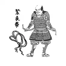 Uwa-obi (上帯[1]) a type of belt/sash that was worn by the samurai class and their retainers in feudal Japan. The uwa-obi was used to attach the sageo (saya cord) of the sword or swords worn by a samurai in order to secure it, other weapons and equipment would be tied to the uwa-obi as well. The uwa-obi was made from linen and cloth made of cotton, it would be wound two to three times around the body when worn. When the uwa-obi was worn with the attire or armour of the samurai, it would first be folded in two, then twisted and then a piece of leather was placed within the centre. This method was used to find the middle of the uwa-obi in a dark area. When putting on the uwa-obi, it was worn with the center in the front of the Dou (dō) (chest armour), then the two ends would be wound around the waist area and back to the front, the uwa-obi would be tied in front rather firmly with the hanamusubi knot.