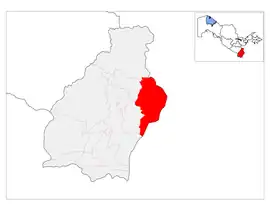 Uzun is a district of Surxondaryo Region in Uzbekistan. The capital lies at the town Uzun.[1] It has an area of 1,630 km2 (630 sq mi)[2] and its population is 173,900 (2021 est.).[3] The district consists of 9 urban-type settlements (Uzun, Chinor, Ulanqul, Qarashiq, Yangi kuch, Jonchekka, Malandiyon, Mehnat, Yangi roʻzgʻor) and 7 rural communities.[1]