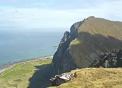 An 840 ha area consisting of vertical cliffs and steep grassy slopes on the south-west peninsula of the island, along with the Måstadfjellet nature reserve and adjacent marine waters, has been designated an Important Bird Area (IBA) by BirdLife International because it supports large breeding colonies of about 40,000 pairs of Atlantic puffins and 15–20,000 pairs of black-legged kittiwakes.[3]