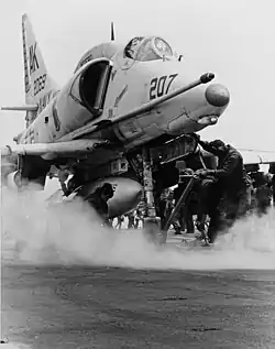 VA-106 A-4E prepares to launch from USS Intrepid in 1968
