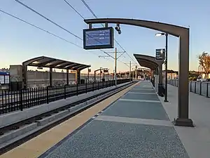 VA Medical Center station is a San Diego Trolley station in San Diego, California, elevated and adjacent to the Veterans Affairs hospital next to UC San Diego.[4] Service began on November 21, 2021[3] after the completion of the Blue Line Mid-Coast Trolley extension project.[5][6]
