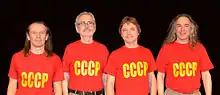 As composition of the music band also includes Valentin Diaconov and Yuri Peterson (guitar and vocals), Alexey Shachnev (bass), Sergey Berezin (keyboards) and Alexander Mogilevsky and Gennady Zharkov (pipes), Irina Shachneva (vocals) and Yuriy Genbachev (drums). Most members of the ensemble had an average music education.[4]