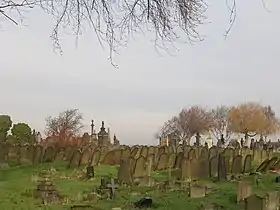 "V" describes the author's visit to his parents' grave in a Leeds cemetery "now littered with beer cans and vandalised by obscene graffiti". The cemetery in question is Holbeck Cemetery in the Beeston area of Leeds which overlooks the Elland Road football ground, close to where Harrison grew up.