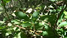 Vaccinium koreanum, the Korean blueberry, Korean: 산앵도나무, Chinese: 红果越桔, is a plant species native to Korea and neighboring Liaoning Province in China. It is a deciduous shrub with toothed leaves and red, ellipsoid berries.[2][3] It grows on rocky, mountain summits.[2]