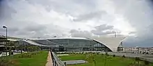 Valencia Airport (Spanish: Aeropuerto de Valencia, Valencian: Aeroport de València) (IATA: VLC, ICAO: LEVC), also known as Manises Airport, is the tenth-busiest Spanish airport in terms of passengers[3] and second in the Valencian Community after Alicante. It is situated 8 km (5.0 mi) west[2] of the city of Valencia, in Manises. The airport has flight connections to about 20 European countries and 8.53 million passengers passed through the airport in 2019.[1]