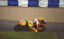 Rossi finished second in Imola and off the podium in eighth place at the Valencian Community round.[26] He finished the season strong with three more race wins: one in Australia, where he fought hard with Olivier Jacque, one in South Africa and one in Rio de Janeiro.[27][28] After that, he finished in third position at the Argentinian round after scoring pole position on Saturday.[29]