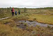 A boarded footpath across the mire