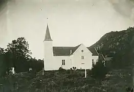 The earliest existing historical records of the church date back to the year 1390, but it was not new that year. The medieval building was likely a stave church, and it was probably located about 60 metres (200 ft) north of the present church site, at the north end of the present church cemetery. In 1577, the local parish priest, Peder Claussøn Friis, built a new church on the same site as the previous church. From 1678-1680, the church was enlarged by adding onto the sides, creating a cruciform design. In 1793, a new church was constructed about 60 metres (200 ft) to the south of the old church. After the new church was completed, the old church was torn down. The new church also had a cruciform design.[3]