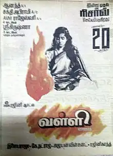Valli is a 1993 Indian Tamil-language drama film directed by K. Natraj, written and produced by Latha Rajinikanth and Rajinikanth, who also stars in extended guest lead role. It stars Hariraj and Priya Raman as the main leads, with Vadivelu playing the comedian and newcomer Sanjay as the main antagonist. The film's music was scored by Ilayaraja. Rajinikanth scripted the film, wrote the dialogues and appeared in an extended guest role. The movie was a box office disaster.[1]