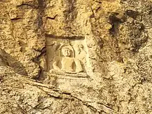 The Jain sculpture are engraved on two spots, one on the norther side of Murugan temple and second on the southern side, with one sculpture with superhuman dimensions.[11] There is an image of Ambika in sukhasana position wearing a necklace, armbands, and crown.[13] Ambika is depicted sitting on a lion with carvings of her two sons below her pedestal.[14] There is also image of Padmavati with 4 hands, holding goad and noose in upper right and left hands.[7]