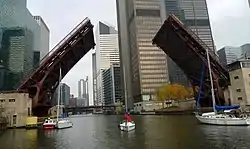 The Van Buren Street Bridge is a bascule bridge that spans the Chicago River in downtown Chicago, Illinois, United States.[1] It is the sixth bridge at this location and carrying this name, and was completed in 1956.[1] It replaced an 1895 Rolling Lift-type bascule bridge designed by William Scherzer.