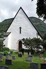 Vangen Church (Norwegian: Vangen kyrkje) is the main parish church in Aurland Municipality in Vestland county, Norway. It is located in the village of Aurlandsvangen, at the end of the Aurlandsfjorden. It is the church for the Vangen parish which is part of the Sogn prosti (deanery) in the Diocese of Bjørgvin. The white, stone church was built in a long church design and in early Gothic style around the year 1202. The church seats about 270 people.[1][2]