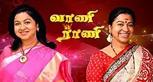 Vani Rani is a 2013-2018 Indian Tamil-language soap opera that aired on Sun TV from 21 January 2013 to 8 December 2018 for 1743 episodes.[3][4][5] The show starred Radikaa Sarathkumar, Venu Arvind and Babloo Prithiveeraj.