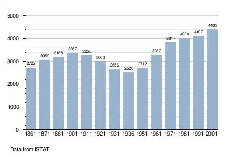 - ↑ "Popolazione Residente al 1° Gennaio 2018". Italian National Institute of Statistics. Retrieved 16 March 2019.