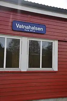 Vatnahalsen Station (Norwegian: Vatnahalsen holdeplass) is a railway station on the Flåm Line in Aurland, Norway. It is 1.13 kilometers (0.70 mi) from Myrdal Station, 336.93 kilometers (209.36 mi) from Oslo Central Station and 811.3 meters (2,662 ft) above mean sea level. The station opened on 1 August 1940.[1][2]