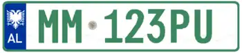 Military Vehicle registration plates in Albania have green borders and green texts on a white background. They follow the format [MM 000PU], where MM stands for Ministria e Mbrojtjes which means Ministry of Defense. The last two digits can be the following combinations:
