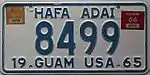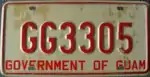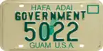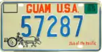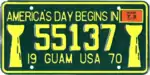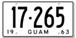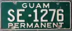 1955–56 Embossed white on dark green with border line; "GUAM" at left and "1955" at right 12345 1 to approximately 14000 Revalidated for 1956 with black tabs.