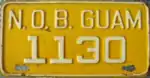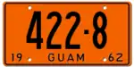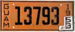 1950–51 Embossed orange on black with border line; "GUAM" at left and "1950" at right 1234 1 to approximately 9900 Revalidated for 1951 with silver tabs.