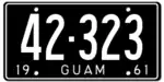 1961 Embossed white on black with border line; "19 GUAM 61" at bottom 12-345 1 to approximately