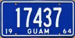 1964 Embossed white on blue with border line; "19 GUAM 64" at bottom 12345 1 to approximately 17500