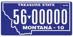 2010–present | Screened white serial with buffalo skull separator on reflective blue plate with white state-shaped border; "MONTANA - 10" screened in white centered below serial | "TREASURE STATE" screened in white centered at top | 1-12345A 10-1234A |