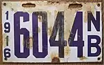 1916 | Dark blue serial on light blue porcelain plate; vertical "1916" and "NB" at left and right respectively | none | 1234 | 3000 to approximately 6500 | |